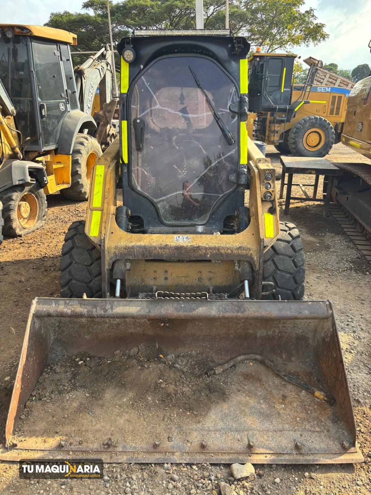 MINICARGADOR usado marca CATERPILLAR, año 2020, modelo 232D3, horómetro aprox. 4.122 h, motor CATERPILLAR C2.2 con una potencia neta de 67 hp @ 1500 rpm, capacidad de balde 910 kg, máxima altura de vertido 2,3 m, peso operativo 2.700 Kg.