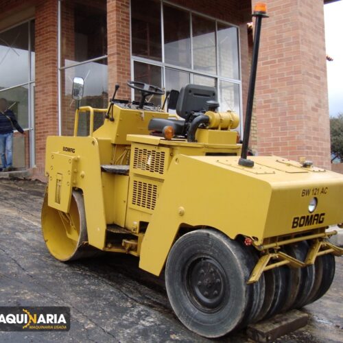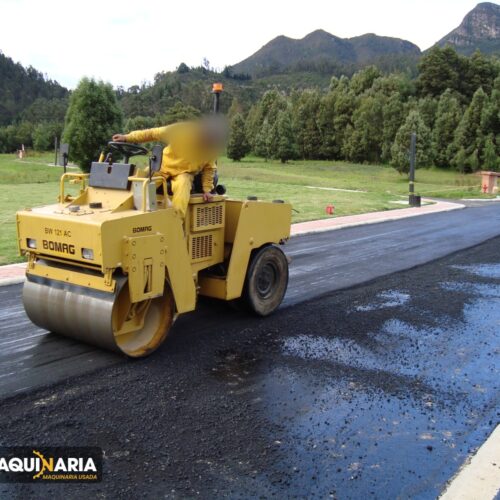 VIBROCOMPACTADOR usado marca BOMAG, modelo BW121AC año 1997, horómetro aprox. 2.500 h, motor KUBOTA 111 año 2019 con una potencia neta de 29 hp @ 2500 rpm, ancho de compactación 1,2 m, peso operativo 3.550 Kg.