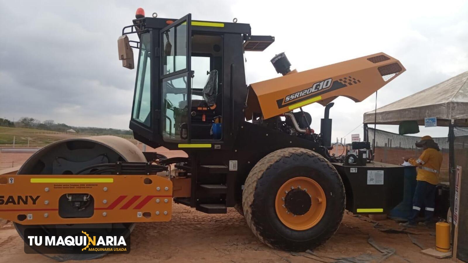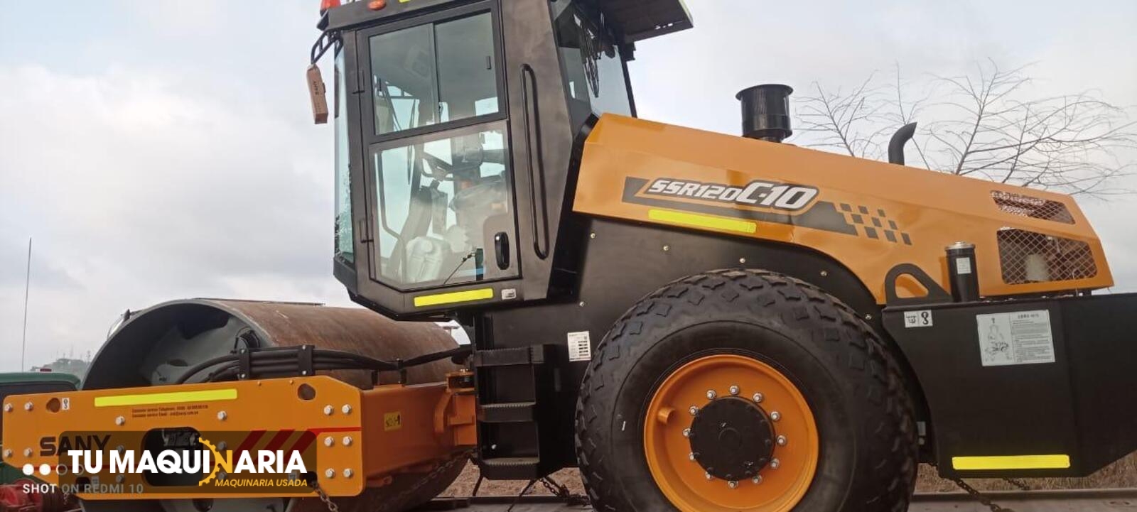 CARGADOR usado marca SANY, año 2024, modelo SSR120C-10, horómetro aprox. 600 h, motor CUMMINS 4BTAA3.9-C125 con una potencia neta de 124 hp @ 2200 rpm, ancho de compactación 2,13 m, peso operativo 12.000 Kg.