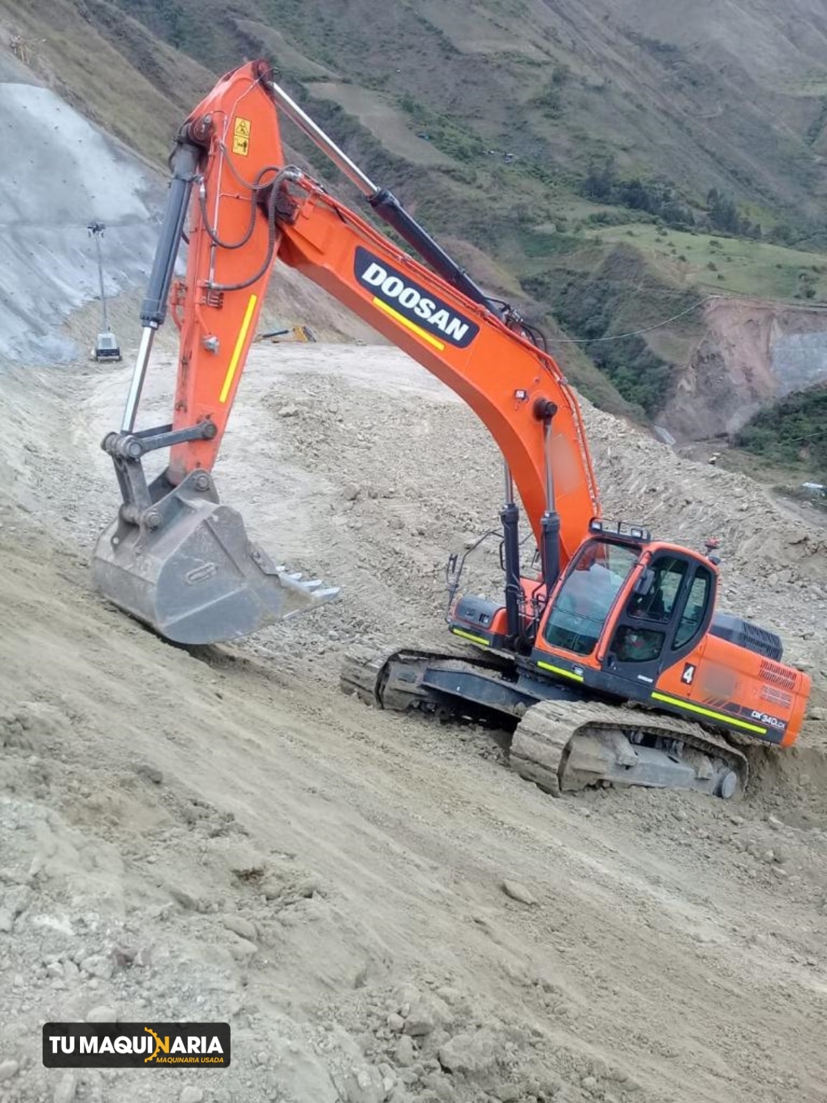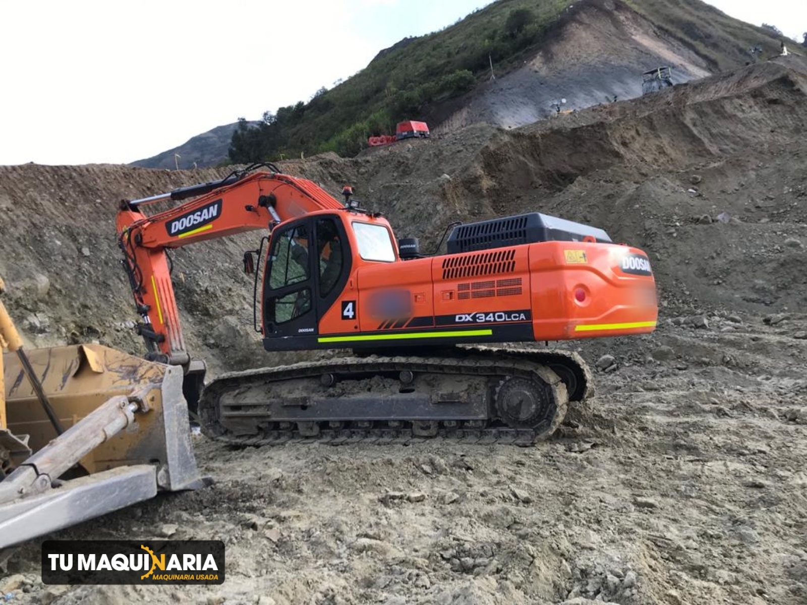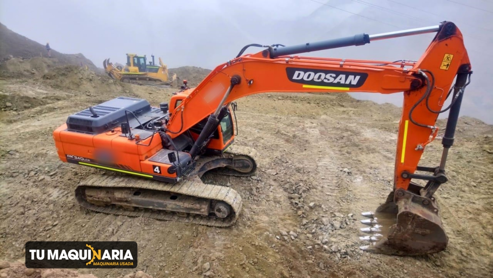 EXCAVADORA usada marca DOOSAN, año 2019, modelo DX340LCA-K, horómetro aproximado 11.622 h, motor DOOSAN DX12TI, con una potencia neta de 261 hp @ 1400 rpm, profundidad de dragado 7,5 m, capacidad de 1,49 m3, peso operativo 34.400 Kg.
