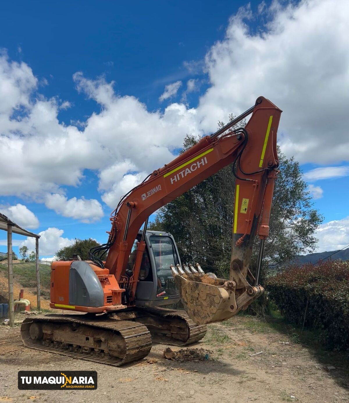 EXCAVADORA usada marca HITACHI, año 2006, modelo ZX135US, horómetro aprox. 8.287 h, motor ISUZU CC-4BG1TC con una potencia neta de 124 hp @ 1800 rpm, capacidad de cuchara 0,66 m3, máxima profundidad de excavación 6 m peso operativo 13.200 Kg.
